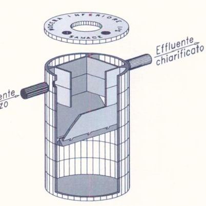 Vasca IMHOFF 10420045, è una vasca fatta in cemento armato di eccezionale resistenza dal diametro di 200cm, altezza 300cm, utenti e gestiti 45.